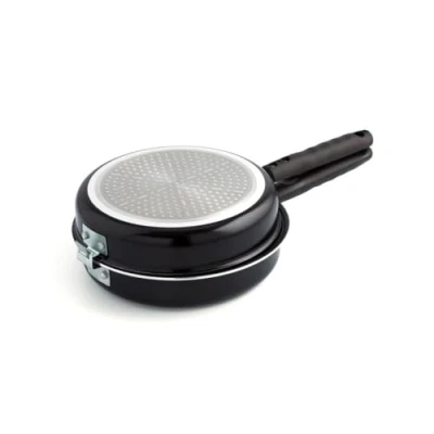 Double frying pan for omelettes Made of aluminium Non-stick coating With safety lock Especially for ceramic hobs but suitable for all hobs, including induction.
