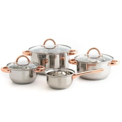 Handles or steel handle, good heat distribution and less power need. Riveted handle Suitable for ceramic hobs, suitable for induction, suitable for electric, suitable for gas Dishwasher safe, hand wash and dry recommended for long-lasting use Saucepan 16 cm, Saucepan 20 cm, 24 m Saucepan and 14 cm Saucepan
