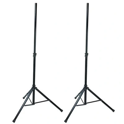 Pair of tripod speaker stands with aluminium center tube and steel legs for added strength The polycarbonate leg joint provides an elegant look to the stand, while ensuring maximum stability Snap lock holder on height adjustment collar prevents safety pin scratching tube’s finish during transport The 38 mm (1-1/2”) add-on top plastic cap allows to accommodate different standard speaker mountings