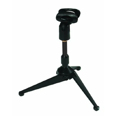 Desk tripod microphone stand with rubber mic holder Lightweight Height adjustable Small base on legs Fits all types of microphone clip