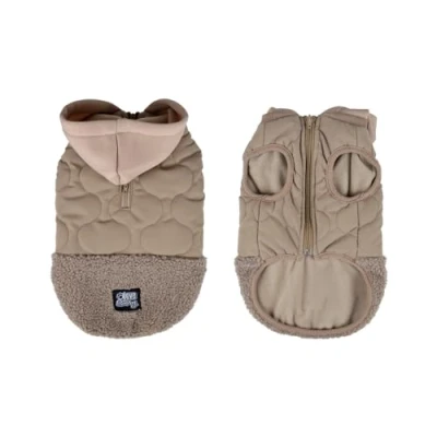 Quilted Hooded Coat Zip Teddy Fleece Lined S/30 cm Beige