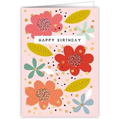 Quire Copper Charm Happy Birthday Flowers ,Rose Gold,115 x 163mm