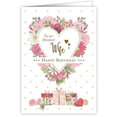 Foiled, embossed and individually cello wrapped Blank inside Card Text : To My Dearest Wife / Happy Birthday Envelope Colour : Cream