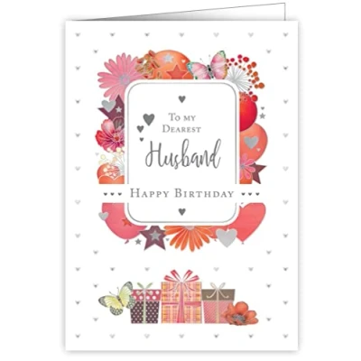 Foiled, embossed and individually cello wrapped Blank inside Card Text : To My Dearest Husband / Happy Birthday Envelope Colour : Cream