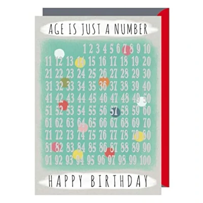 Individually cello wrapped Blank Inside Card Text : Age is Just A Number Happy Birthday Envelope Colour : Grey / Red Finishing : Foiled