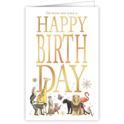 Foiled and embossed Blank inside Card Text : Go Wild And Have A Happy Birth Day Envelope Colour : Cream Finishing : Foiled + Embossed