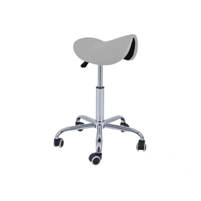 QUIRUMED Pony Stool 5 Wheels, Chrome Base, Silver Colour, Upholstered in Leatherette, Height Adjustable, Lightweight, Ergonomic Design, Rotary, Up to 150 kg