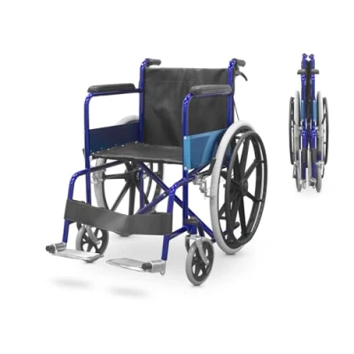 QUIRUMED Steel Folding Wheelchair, with Hand Brakes and Brake Levers, Footrests, Easy Folding, Lightweight, for Elderly, The Disabled
