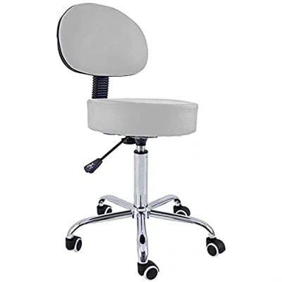 QUIRUMED Stool with Backrest, Chrome Base, 5 Wheels and Gas Lift, Silver, Metal Frame, Leatherette, High Density Filling, Adjustable Height, Up to 150 kg
