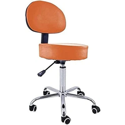 QUIRUMED Stool with Backrest, Chrome Base, 5 Wheels and Orange Gas Lift