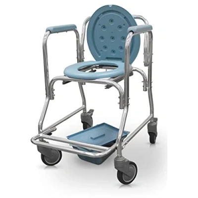 Bath or shower chair with toilet. Lightweight, waterproof and easy to use. With wheels for easy handling. Aluminium and PVC stucture for easy cleaning. Maximum weight supported: 100 kg.