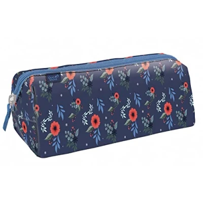 QUO VADIS Collection: DAISY Triangular School Pencil Case 1 Large Compartment to Store Pens, Pencils and Felts Size 23 x 8 cm Blue Visual