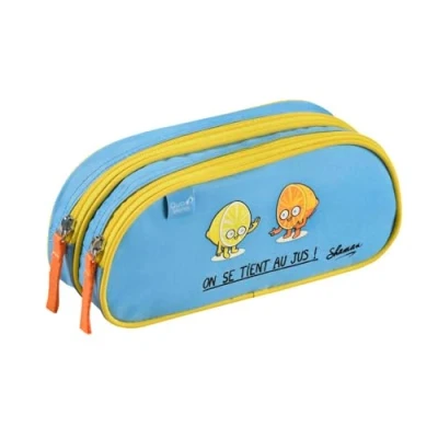 This 2 compartment pencil case is ideal for organising your belongings. Its wide base allows it to stand up and not rotate on a desk Large capacity for storing pencils, eraser, scissors, etc. Sturdy zipper for easy use Made of durable polyester canvas Printed and embroidered design