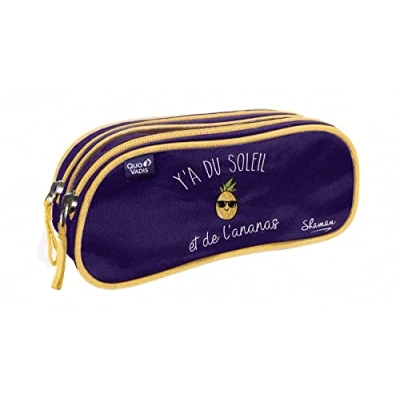 QUO VADIS Collection: Shaman School Pencil Case 2 Large Compartments for Storing Pens, Pencils and Felts Size 10 x 23 7 cm VisuelY a du soleil et le Pineapple