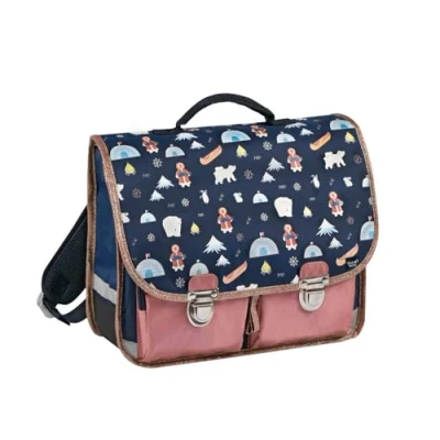A school bag with 2 compartments to keep things organized 2 outer zipped pockets and 1 transparent pocket under the flap for your schedule Adjustable shoulder straps to fit the size of each Padded shoulder straps and back for comfort, reinforced bottom for extra strength Reflective strips, metal closure clips are easy to open and close
