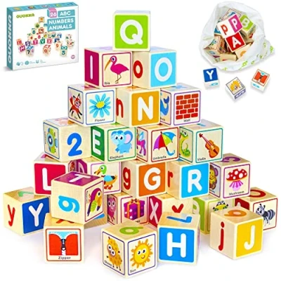 Quokka Wooden Building Blocks for 1 2 3 Year Olds Baby Toys Boys & Girls 26 Number Alphabet Puzzle Toddlers Educational Game 4 5 6 Old Kids