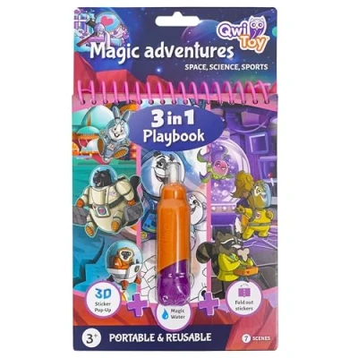 ☀️ UNIQUE INTERACTIVE EDUCATIONAL GAME that combines 3 playful elements in one handy book: Magic water reveal block, foldable with reusable stickers and 3D pop-ups with reusable stickers. ☀️ MAGIC DESIGN:With the simple touch of water thanks to the refillable pen, hidden illustrations come to life, creating a surprising and fun experience that will unleash your child's imagination. NO DIRTY! ☀️ REPLAYABLE TIMES: Once dry, the pages will be white again, ready to be recolored again for endless creative experiences ☀️ IMAGINATION STIMULATION, IDEAL FOR STORYTELLING With the openable scenarios accompanied by removable stickers, it invents different stories. Ideal for endless possibilities of imagination, fun and storytelling. ☀️ 3D POP-UP SCENARS Keep stimulating imagination even with the 3D puffy stickers that make book pop up scenarios come alive. Reusable stickers on all surfaces. ☀️ CHILDREN TRAVEL GAME A book game ideal for travel or great educational and creative entertainment for children outside the home, during a dinner at a restaurant or an event. ☀️ EDUCATIONAL GAME FROM 3 YEARS The 3-in-1 game book helps to develop fine motor skills, coordination and creative expression. Entertain your kids away from the screens thanks to magical colouring, storytelling with openable scenarios or 3D to make alive thanks to stickers, classic and even puffy! ☀️ UNIQUE AND ORIGINAL GIFT IDEA that combines 3 activities and ensures hours of educational, creative and fun entertainment for children ☀️ LARGE CONTENT 4 pages to colour with water incl. Pen 1 double-sided folding with 2 scenarios 1 3D Pop-up Folding 33 - 48 Reusable Stickers 9 - 13 Reusable 3D Puffy Stickers Practical Format, ideal for travel Hours of play of educational content Pocket & Reusable From 3 years 9 Languages in 1 (EN, DE, FR, IT, ES, PT, NL, PL, RU), Manufacturer: QwiToy