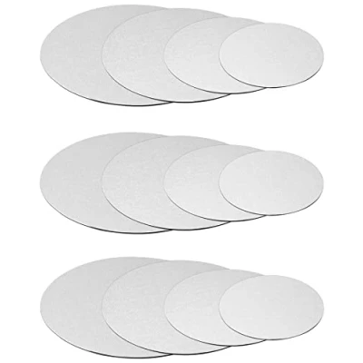 QWORK® 12 Pcs Silver Cake Boards, 6'', 8'',10'',12'', Round Board, Cardboard, for Wedding, Birthday Cakes, House party