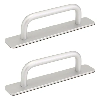 QWORK® 2PCS Door Pull Handle Self Adhesive Aluminum Alloy Push Sliding No Drilling for Gate Cupboard Toilet Cabinet Garage Shed Barn, 150 x 25 mm