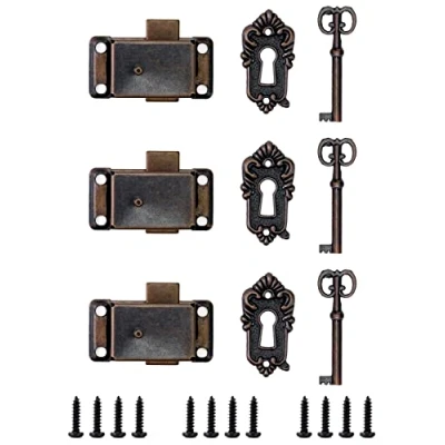 QWORK® 3 Pieces Antique Cabinet Door Lock Sets, Retro Locks with Keys, for Jewellery Boxes, Cabinets, Drawers