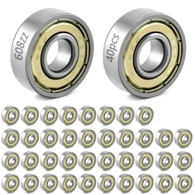 Size: 608ZZ , ID=8mm, OD=22mm, Thickness=7mm Double cover sealing: Shields on both sides of the bearings prevent dust from entering. Suitable for high speed operation Durable: Made of carbon steel with load resistant high hardness shell, rust and wear resistant, sturdy and durable to ensure safe operation Widely used: scooter bearings, pedals, skates, skateboard bearings, ball bearings, inline skates accessories, toy models, office equipment, micro motors, instruments, laser engraving, small clocks and watches, soft drives, pressure rotors, dental drills, hard disk motors, stepper motors Box contents: 40 pieces of 608zz bearings.Pre lubricated for easy maintenance