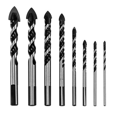 One drill bit replaces two drill bits (1x glass & tile drill bit + 1x Mansonry drill bit), ideal for drilling fastner holes in bathroom tiles, or wall mirrors. Once it drills through the tile or mirror this drill bit will cope easily with any masonry behind it. Spear pointed design strong tungsten carbide tip can easily penetrate various material(tile, concrete, brick, glass, plastic and wood,etc) and reduces breakout. 8 Pcs drill bit set with 8 different sizes: 1/8” (3mm), 5/32” (4mm), 3/16” (5mm), 15/64” (6mm), 5/16” (8mm), 25/64” (10mm), 35/64” (14mm), 5/8” (16mm). U type slot design with fast drilling dust remove, 3-flats shank allows drill bit to be held tightly and stably in power drill. When drilling hard material (glass, porcelain floor tile, marble or granite), please use water for lubrication. Heavy duty drill bits made by factory that manufactures products for big international tool brands with guaranteed quality. For genuine multi-material drill bit, please identify QWORK brand drill bits packed in sealed transparent plastic box with two sides of blue color stickers.