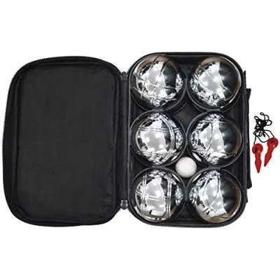 PERFECT FOR OUTDOOR FUN - This petanque set is ideal for outdoor games for adults and families, whether in the garden, park or on the beach. COMPLETE SET - Includes 6 metal balls (73mm, 720g), 1 wooden gris, 1 tape measure and a handy nylon bag for easy transportation. Durable Material - The balls are made of chrome plated steel, which ensures long durability and an authentic gaming experience. Suitable for all levels of play - Perfect for beginners and experienced players, this outdoor games set provides fun and competition on any occasion. Flexible Pitch Size - The game can be played on gravel, sand or lawn, and the playing field size can be adjusted as needed.