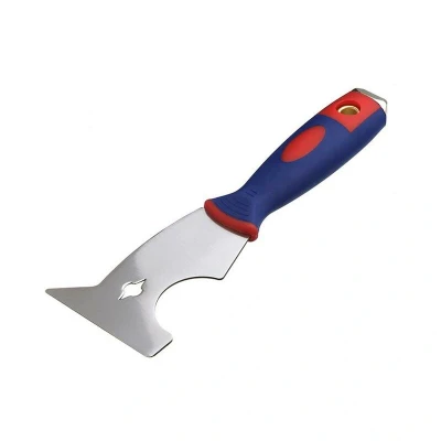 General description The R.S.T. 9-in-1 Paint Tool is a versatile tool designed for various painting and home improvement tasks. It features a durable steel blade and a comfortable soft-touch handle, making it suitable for multiple functions such as scraping, spreading paint, and opening paint tins. Technical specifications Material: Steel blade Handle: Soft-touch for comfortable grip Functions: 9-in-1 tool including scraper, convex scraper, concave scraper, paint spreader, nail setter, nail puller, paint crack cleaner, roller cleaner, and paint tin opener/closer Compatibility and accessories Compatible with standard paint tins Suitable for surfaces requiring scraping or spreading No additional accessories required Installation No installation needed; ready to use out of the box. Usage Use the scraper to remove old paint or debris from surfaces Employ the convex or concave scraper for detailed or curved surfaces Spread paint evenly with the paint spreader Use the nail setter and puller