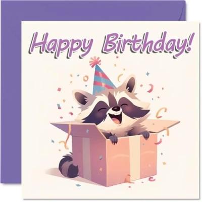 Raccoon Birthday Cards Animal Gifts Happy Card for Son Daughter Brother Sister Grandson Granddaughter Niece Nephew Cousin, 145mm Bday Greeting