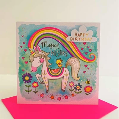 Rachel Ellen Rainbow Unicorn Magical Wishes Happy Birthday Card