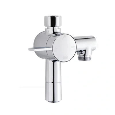 Rada V12 diverter. Exposed lever operated diverter valve designed for connection to the Rada V12 Exposed Shower. Features: Two outlet diverter valve, designed to add extra convenience and flexibility to showering Designed for use with the Rada V12 Exposed shower valve Simple to use - allows you to divert water between two different outlets off the same shower valve, or to have both running simultaneously Suitable for either high or low pressure systems Genuine brand new Rada product, covered by a Rada manufacturer's guarantee.