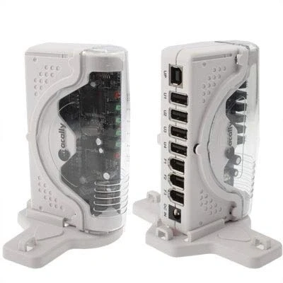 Provides both FireWire and USB 2.0 Hi-speed ports in one hub. Convenient vertical, horzontal or magnetic mounting base. Provides 2 FireWire ports with up to 400Mbps data transfer rate. Provides 4 USB 2.0 Hi-speed ports with up to 480Mbps data transfer rate. Attractive translucent and ice white color to compliment your MAC.