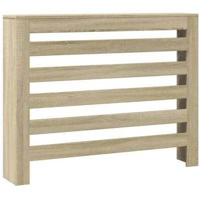 ManoManoGeneral description This radiator cover will make a perfect addition to your living room. It features a modern, slatted design that suits any decor, providing both style and practicality. The cover is designed to give your radiator a decorative function while offering additional shelf space for photo frames, books, and ornaments. Technical specifications Colour: Sonoma oak Material: Engineered wood Dimensions: 104 x 20 x 82 cm (L x W x H) With horizontal slats Assembly required: Yes Usage Easy to maintain: The smooth surface allows for easy cleaning with a damp cloth. Warning: To prevent it from tipping over, this product must be used with the provided wall attachment device. Other information