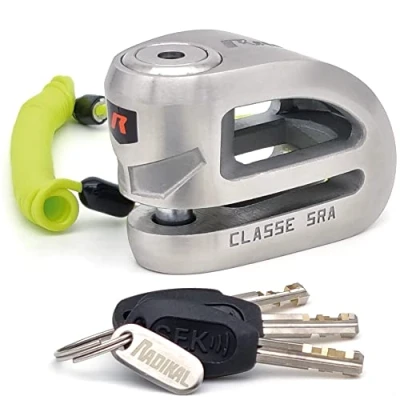 resistant anti-theft disc for motorcycles tested against saw, drill, pick, lever . in the classe sra homologation. made of 100% stainless steel with a polished finish. lightweight architecture with unique safer double bridge design. cylinder with anti-drill disc protection, with 10mm double locking shaft made of reinforced steel and tested against saw, drill, pick . double anti-corrosion treatment. includes 3 special high security keys. recommended to insure high-end motorcycles and maxi scooters in places with a high risk of theft.