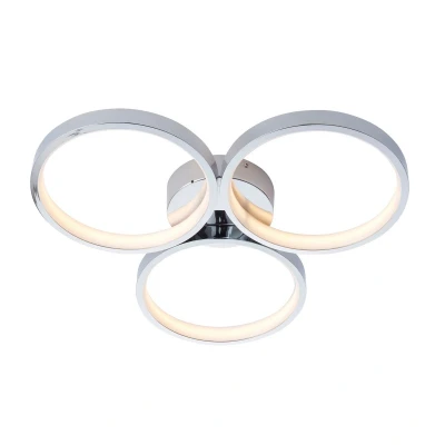 A simple geometric hoop ceiling light finished in chrome with bright integrated LED light