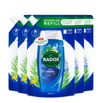 AmazonRADOX Mineral Therapy Feel Awake 2-in-1 Body Wash & Shampoo provides an awakening shower experience that revives your senses Our shower gel & shampoo is made with a unique blend of minerals and herbs which activates with hot water to cleanse and refresh you Feel the fresh, energising sea breeze invigorate you with RADOX Feel Awake Shower Gel, infused with a mood-boosting fragrance of sea minerals and fennel Our body wash is suitable for daily use – simply squeeze it out, lather on hair and body and indulge in a refreshing shower experience This skin cleanser is pH neutral and suitable for all skin types The refill pouches for our shower gels use 74% less plastic versus two bottles of RADOX shower gel* (*225 ml); it only takes one pouch to refill your RADOX shower gel bottle twice