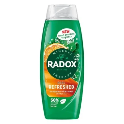 Indulge in a refreshing shower experience with RADOX Feel Refreshed Shower Gel. Made with a unique blend of minerals and herbs, this energising gel activates with hot water to revitalize your senses. Infused with eucalyptus and citrus oil, it's suitable for daily use and has a pH neutral formula for all skin types. Plus, it comes in eco-friendly and refillable bottles.. 1 x Radox Feel Refreshed Eucalyptus & Citrus Shower Gel 225ml. 50% recycled plastic bottle. New mood boosting fragrance. Eucalyptus and citrus