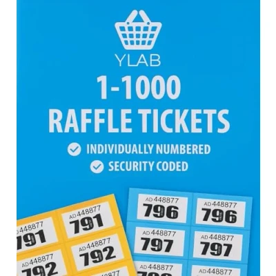🎟️ Blue Raffle Book, Tickets Numbered 1-1000 – Printed with security numbering to prevent duplication. ✂️ Perforated for Quick & Easy Use – Smooth, clean tearing for fast ticket handling. 📏 Compact & Convenient Size – Strip: 14.5 x 3cm, Ticket: 4.7 x 3cm, perfect for handling. 🎯 Multi-Purpose – Ideal for raffles, fundraising, cloakroom tickets, tombolas, and prize draws. 🔵 Bold Blue Colour – Distinctive and easy to manage for any event., Manufacturer: YLAB
