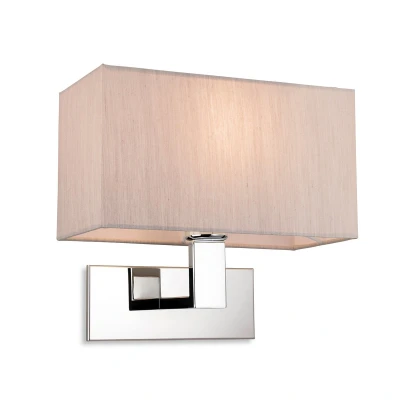 The Firstlight Raffles Contemporary Style Wall Light is a striking addition to elevate your home's interior design. This exquisite wall light combines elegance and functionality, making it ideal for various spaces, including bedrooms, living rooms, dining areas, and hallways. Its stunning design features a chrome finish paired with a beautiful rectangular oyster polycotton shade, creating a harmonious blend that enhances any decor.