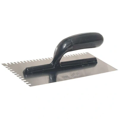 General description The Ragni R231 Mastic Trowel is expertly designed for evenly spreading adhesives and mastics. It features U-shaped serrated edges on one side and the top edge, along with two straight edges for finishing in corners and cutting off excess material. The trowel is equipped with a polished and ground flexible steel blade, complemented by a comfortable banana-shaped plastic handle, ensuring precise application. Technical specifications Blade size: 280 x 120mm (11 x 4.75 inches) Material: Flexible steel blade Handle: Plastic, banana-shaped Edge type: U-shaped serrated edges and straight edges for finishing and cutting Compatibility and accessories Compatible with various adhesives and mastics used in DIY and home improvement projects Installation Not applicable; this is a hand tool used for spreading adhesives and mastics Usage Use the serrated edges to evenly spread adhesive or mastic on surfaces Utilize the straight edges for finishing in corners and trimming excess