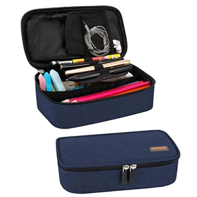 RAGZAN Pencil Case, Large Capacity Pen Case Bag Pouch Holder Stationery Desk Organizer with Zipper for School & Office Supplies(Blue)