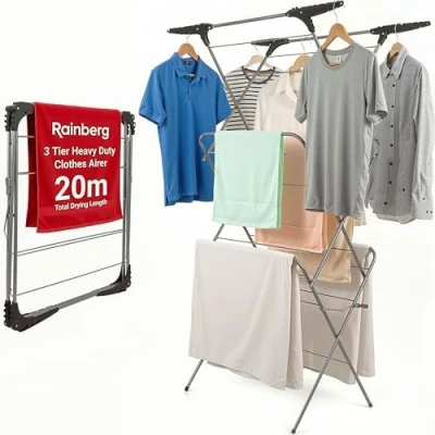 Rainberg 3 Tier Clothes Airer, Indoor Outdoor Drying Rack with 20m Washing Line Space. ( Airer)