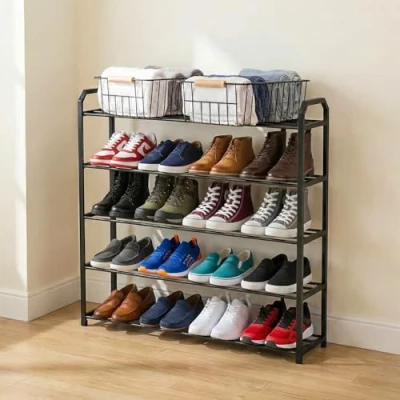 Rainberg 5 Tier Heavy Duty Shoe Rack, Organiser, Storage, Easy to Assemble, Holds up 18 20 Pairs (L 73cm x W 19cm H 75cm) (5 (Extra Large))