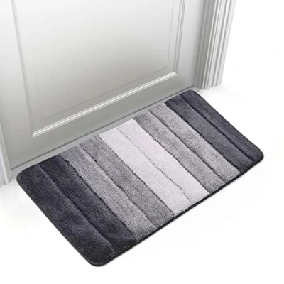 Rainberg Non Slip Bath Mat, Soft and Comfortable Microfibre Mat with Machine Washable, Water Absorbent Quick Drying. (Grey, 40 x 60cm)