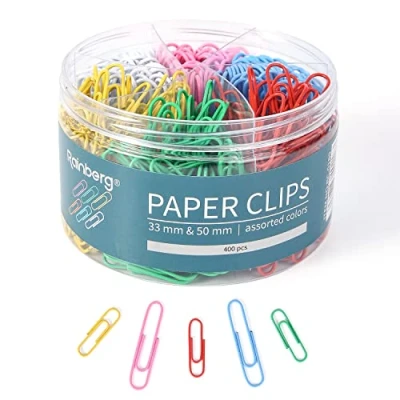Rainberg Paper Clips, 33 & 50mm Clip, 400pcs Paperclips (Multy Colour)