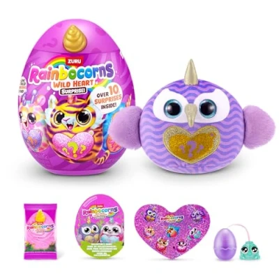 HUG TO HATCH – The magic starts with a hug! Squeeze to reveal your plush toy and all the surprises hidden inside—perfect for unboxing fun and playtime adventure. LONG TAILED BOO-BOOCORNS – Discover adorable Boo-Boocorns with fun, fuzzy long tails hiding in every egg—each one packed with personality. FUN EXTRAS INCLUDED – Enjoy colorful stickers and Rainbocorn poop slime to stretch the fun and spark imagination through sensory play. OVER 10 SURPRISES: Hug to hatch and discover more than 10 exciting and colorful surprises waiting just for you! COLLECT THEM ALL – With 7 wild plush designs to discover, Rainbocorns Wild Heart Surprise makes the perfect collectible for creative kids and toy lovers., Manufacturer: ZURU