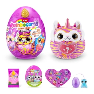 HUG TO HATCH – The magic starts with a hug! Squeeze to reveal your plush toy and all the surprises hidden inside—perfect for unboxing fun and playtime adventure. LONG TAILED BOO-BOOCORNS – Discover adorable Boo-Boocorns with fun, fuzzy long tails hiding in every egg—each one packed with personality. FUN EXTRAS INCLUDED – Enjoy colorful stickers and Rainbocorn poop slime to stretch the fun and spark imagination through sensory play. OVER 10 SURPRISES: Hug to hatch and discover more than 10 exciting and colorful surprises waiting just for you! COLLECT THEM ALL – With 7 wild plush designs to discover, Rainbocorns Wild Heart Surprise makes the perfect collectible for creative kids and toy lovers., Manufacturer: ZURU
