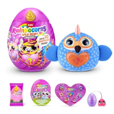 HUG TO HATCH – The magic starts with a hug! Squeeze to reveal your plush toy and all the surprises hidden inside—perfect for unboxing fun and playtime adventure. LONG TAILED BOO-BOOCORNS – Discover adorable Boo-Boocorns with fun, fuzzy long tails hiding in every egg—each one packed with personality. FUN EXTRAS INCLUDED – Enjoy colorful stickers and Rainbocorn poop slime to stretch the fun and spark imagination through sensory play. OVER 10 SURPRISES: Hug to hatch and discover more than 10 exciting and colorful surprises waiting just for you! COLLECT THEM ALL – With 7 wild plush designs to discover, Rainbocorns Wild Heart Surprise makes the perfect collectible for creative kids and toy lovers., Manufacturer: ZURU