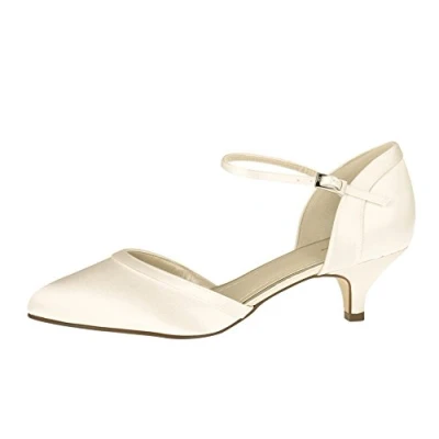 Rainbow Club Brianna Two Part Low Heel Ivory Satin Court Bridal Wedding Shoes with Ankle Strap, 6.5 UK