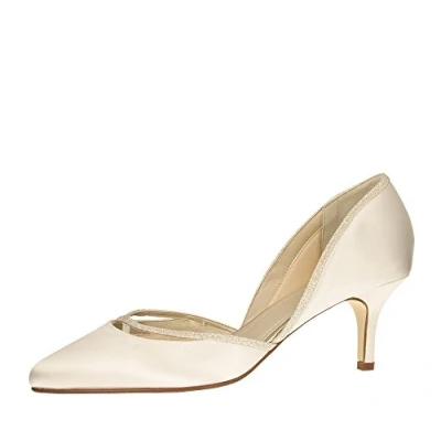 Rainbow Club Bridal Shoes Teddie Pumps, Ivory/Cream, with Glitter Edging, Satin, Comfortably Padded Size 39 EU (6 UK)
